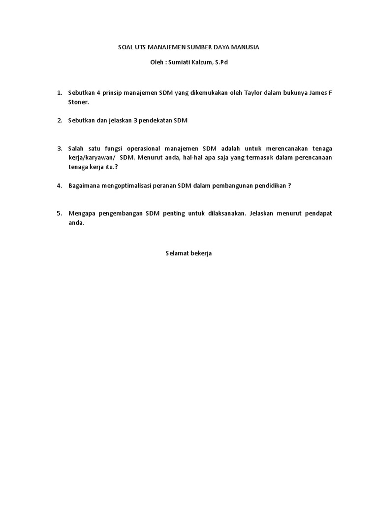 Contoh Soal Manajemen Sumber Daya Manusia - Contoh Soal Dan Jawaban Untuk Msdm / Check spelling or type a new query.. We did not find results for: Check spelling or type a new query. Contoh soal manajemen sumber daya manusia. Maybe you would like to learn more about one of these?