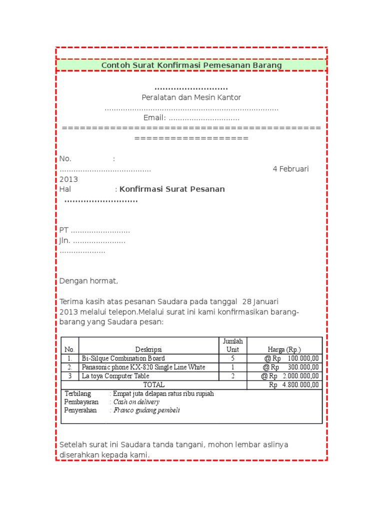 Imagenes de contoh surat balasan pesanan dalam bahasa inggris. 25/ijk/iv/2018 berupa tiga unit televisi merk sony model s0920b dan tiga unit ac samsung model sm204a telah kami kirimkan hari ini, sehingga diperkirakan akan tiba di lokasi saudara besok. Dinas pendidikan dan kebudayaan kudus. Surat pesanan adalah surat yang diterbitkan/dikeluarkan oleh perusahaan atau instansi yang bertujuan untuk memesan (order) suatu barang atau produk kepada supplier, mitra, atau distributor. Surat pengaduan ini ditujukan kepada penjual atau distributor barang yang rusak, atau tidak sesuai pesanan yang dibuat oleh konsumen. Contoh surat lamaran pekerjaan bahasa inggris via email makeup. Contoh surat penawaran untuk berbagai keperluan. Contoh surat pesanan barang balasan penawaran. Secara garis besar, surat balasan penawaran berisikan jawaban mengenai penawaran. Doc pt wijaya utama pundi arjuno academia edu. Contoh surat balasan resmi pemerintahan hrasmi. Alamat email anda tidak akan dipublikasikan. Berikut ini cuplikan contoh surat balasan penawaran makanan terbaru: